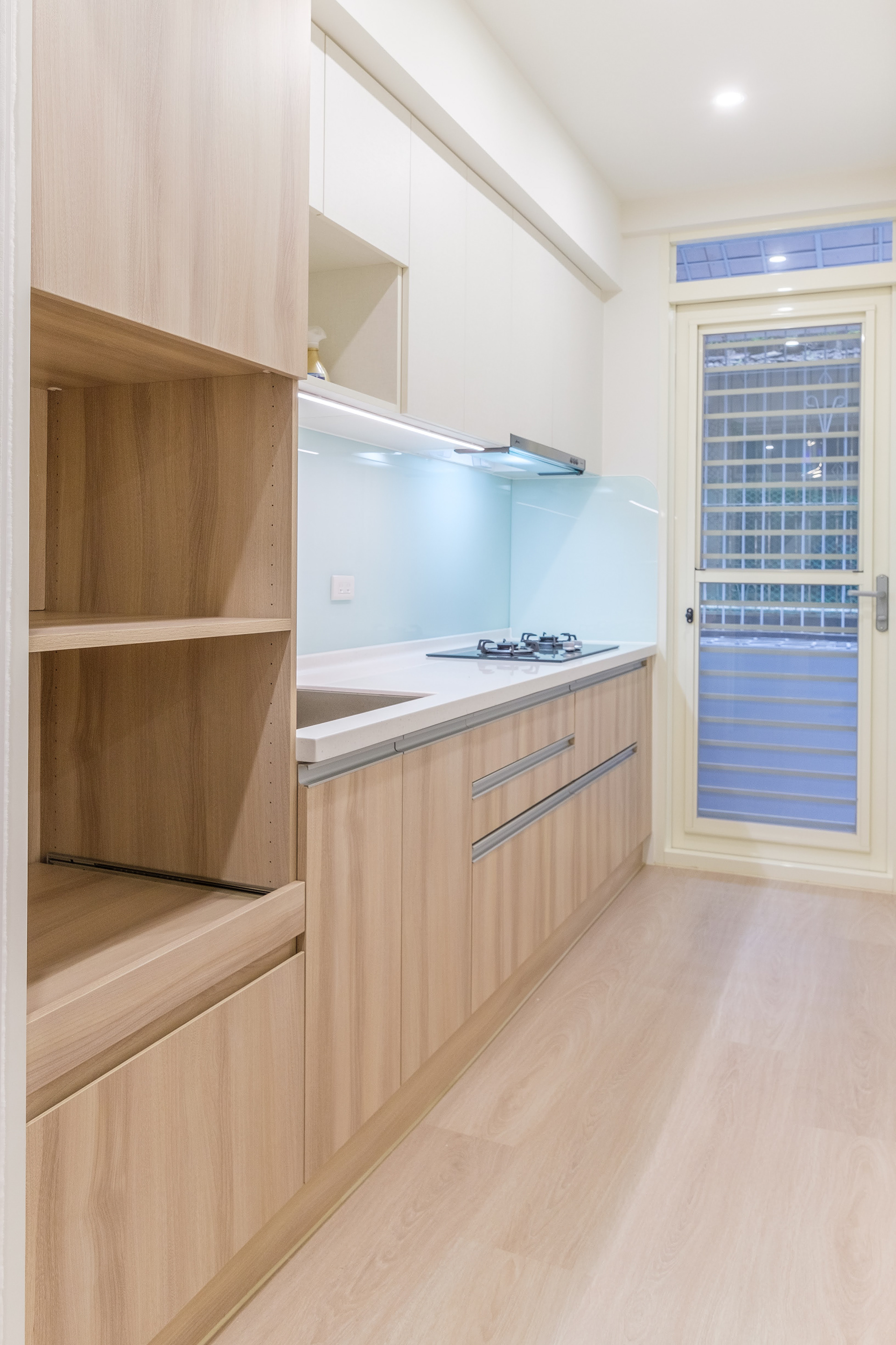本案我們以溫潤的淺木紋系統櫃,描繪出一種自然純淨的氛圍。